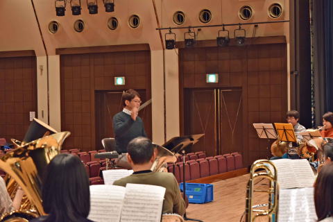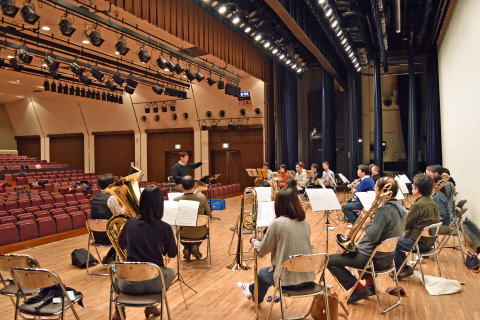 1月22日(日)金管分奏練習を高津市民館:ホールで行いました。金管分奏指導:円能寺博行先生と金管メンバーの練習風景。短い練習時間でしたが、交響曲第3番をポイントを絞り練習しました。