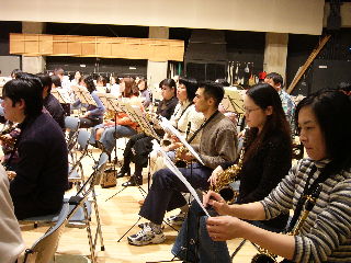 好天に恵まれ、年が明けて間もない中、全国から70名を越えるメンバーが出席して結成式が行われました。パートごとのミーティングの後、配られたばかりの楽譜を目の前にして、全曲を一気に演奏してゆく恒例の初見大会が、今年は常任の伊藤先生に代わり、最近実力を付けて活躍めざましい小林恵子先生(東京佼成ウィンドオーケストラ副指揮者・音の輪コンサートの元フルートメンバー)が担当し、16:30から19:00までの2時間半を篤くリードして頂きました。参加者の面々も小林先生に引っ張られてガンガン吹かされ、充実の集中練習となったようでした。今年のメンバーのリード博士追悼演奏会への思いは非常に大きいものを感じました。きっと素晴らしい演奏会が出来るものと確信しています。最後まで頑張りましょう! 団長:青山(スナップ写真)